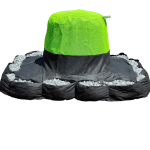 The High Flow Filter is designed to prevent flooding in areas of high water flow. The base of the filters is made of durable pouches for placement of rock or stone weight. The rock bags impound approximately 8 inches of stormwater. The remainder of this filter is made of high visibility high flow green mesh that allows significant water to flow through while still preventing trash and floatables from entering the pipe system.