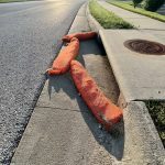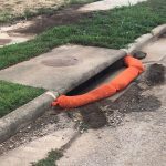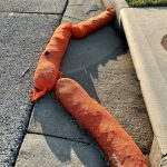 Trap sediment from stormwater runoff that flows onto roadways from construction activities with Filtrexx RockSoxx.