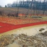 Siltron Advanced Silt Fence is designed to keep seeping even under extreme sediment load. Sediment is held back and clean water seeps through.