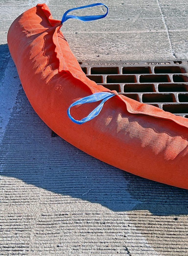StormCatcher is a multipurpose tubular BMP, used where a temporary robust filter berm is needed. The textile is tough and long-lasting. The fill is patent-pending heat-treated rice hull mixed with gravel that forms a high-flow, high sediment retention 3-dimensional filtering matrix. This bio-reactive material targets waterborne pollutants such as oil sheen and heavy metals.